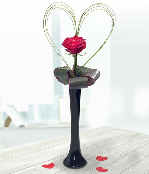 Give your heart and a single red Rose with this stunning black glass vase arrangement.