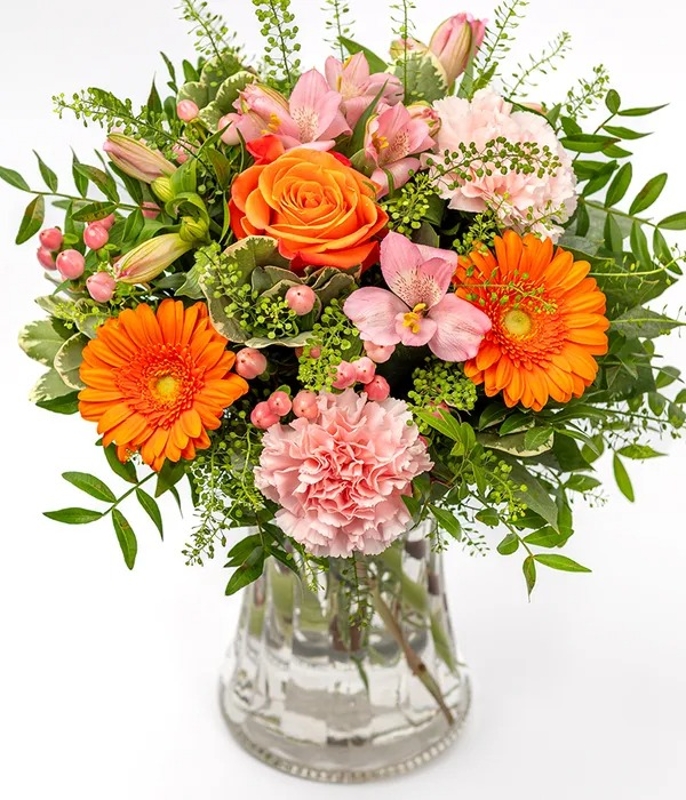 Please Note that due to the seasonal availability of flowers it may be necessary to vary individual stems from those shown. Our skilled florists may substitute flowers for one similar in style, quality and value. Where our designs include a sundry item such as a vase or basket it may not always be possible to include the exact item as displayed. If such an occasion arises we will make every effort to replace the item with a suitable alternative.